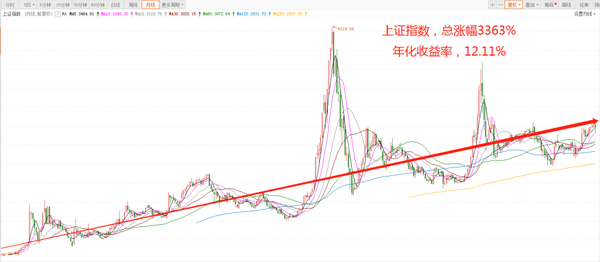 和普通人认为股市必然亏钱截然不同的是,代表市场整体涨跌的大盘指数,长期收益都很高。