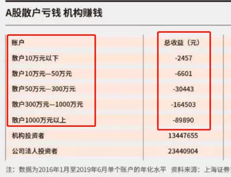 下图是上交所统计的股民盈亏情况,大家可以看到,所有散户,都是亏钱的……惨不忍睹……