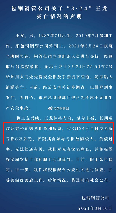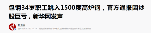 最近就有一个刷屏的新闻,包钢员工炒股票和期货亏损惨重,直接跳进1500度的钢炉了结此生,真是惨不忍睹……