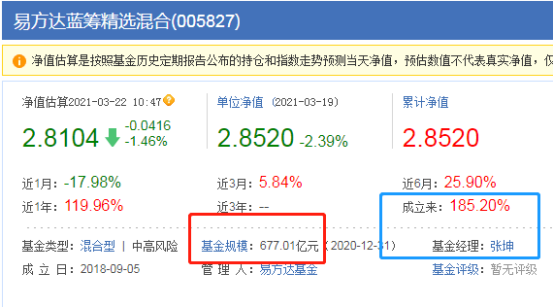坤哥的代表作,易方达蓝筹精选,近1年涨幅119%,两年来涨幅高达185.20%!